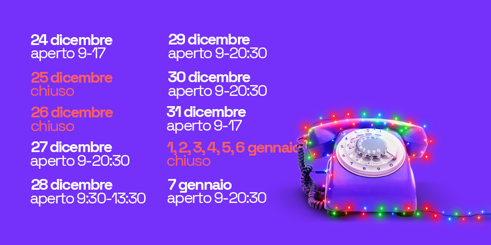 Lunedì-Sabato 9:00-20:30 No Stop